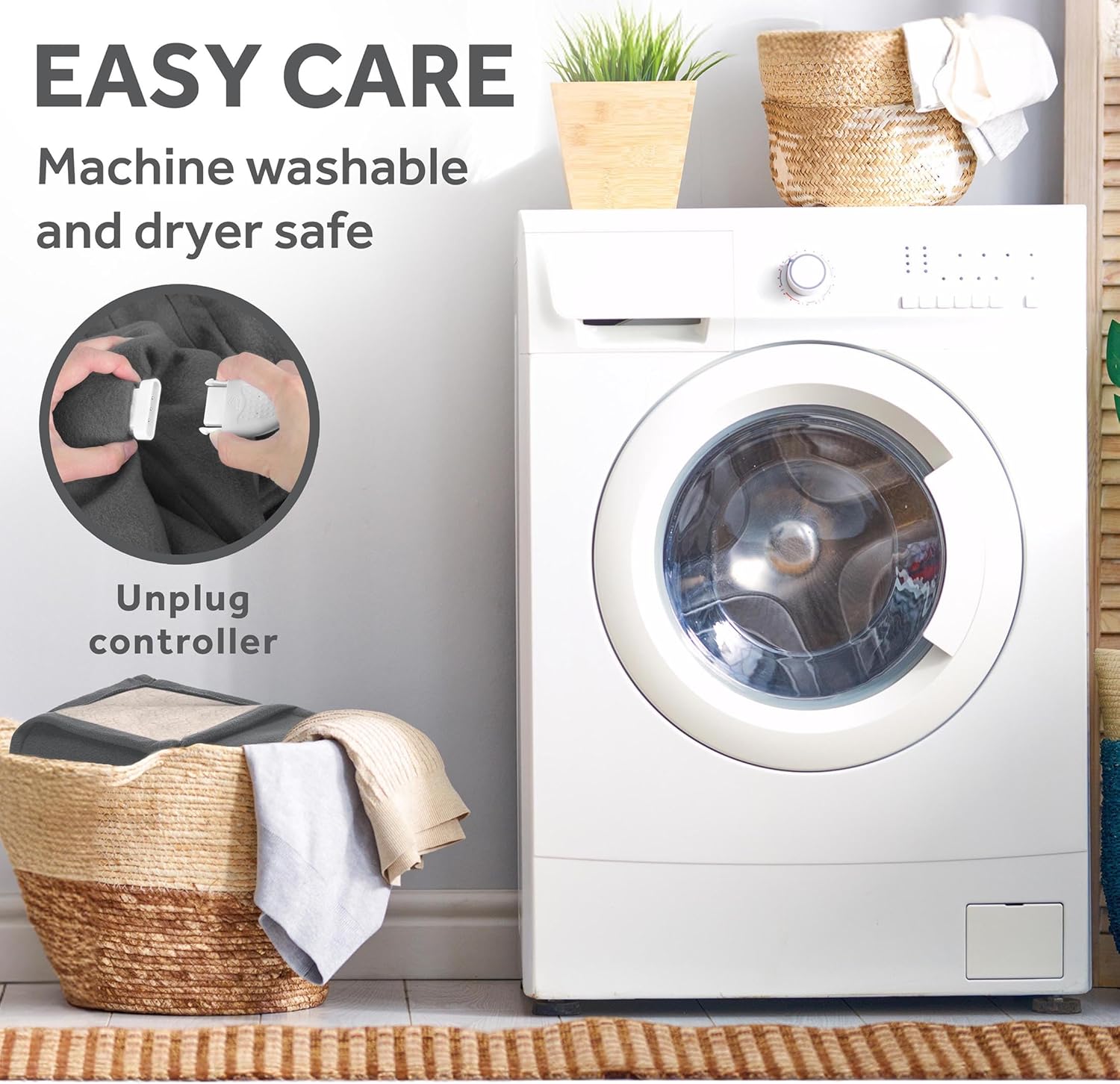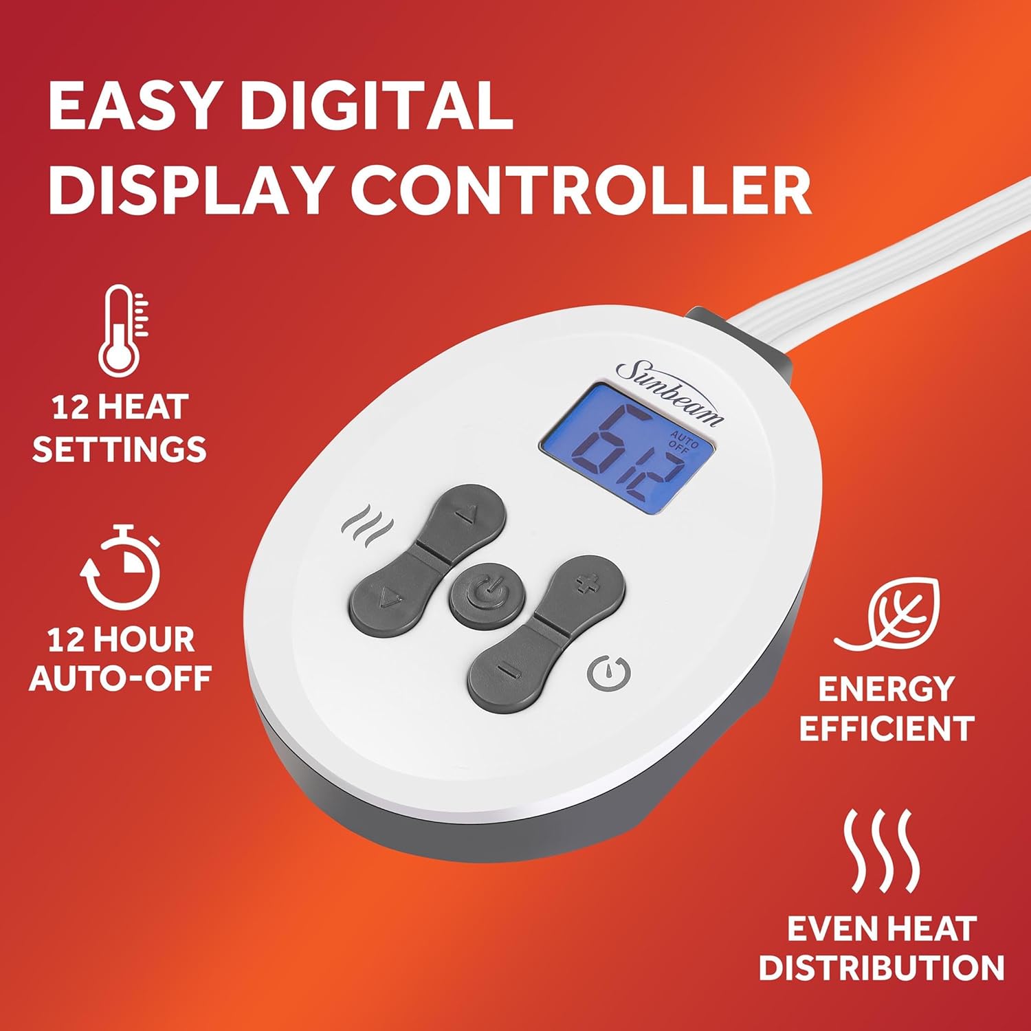 Wrap yourself in warmth and luxury with the Sunbeam Royal Luxe Sherpa Heated Blanket in Night Fog. This twin-sized blanket features a soft, plush Royal Luxe Microplush on one side and cozy Sherpa on the reverse, making it perfect for chilly nights. The digital controller offers 12 heat settings, so you can find your ideal comfort level, along with a 12-hour auto shut-off for worry-free use. The rich, dark grey color adds a touch of elegance to any room, and the blanket is machine washable and dryer safe for easy care.